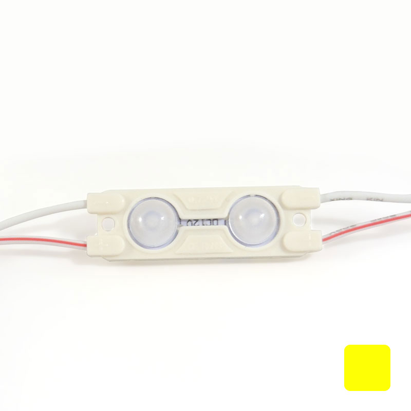 Led module SMD2835 for signs, yellow color, high brightness of small size, versatile and easily adaptable to smaller signs. Perfect for boxed letters in both direct and reflected light. Equipped with aluminum plate to increase heat dissipation, 3m double-sided adhesive and 160° lenses.
